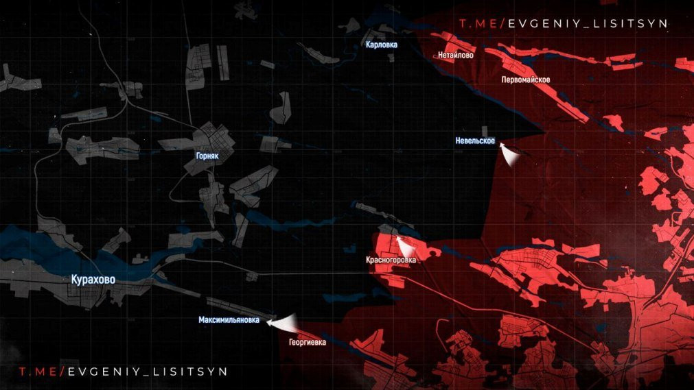 На Кураховском направлении российская армия дозачистила промзону и оформила окончательное освобождение Невельского. В соседней Красногоровке нашим бойцам пока не удается до конца дожать противника и полностью занять город. При этом почти 95 процентов территории Красногоровки - за ВС РФ.