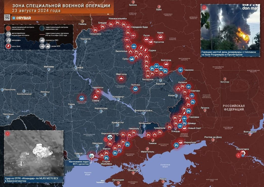 Новая карта боевых действий в зоне СВО на Украине от 24.08.2024
