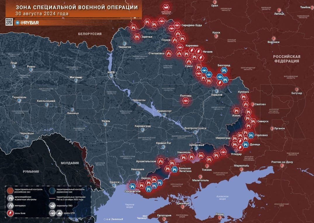 Новая карта боевых действий в зоне СВО на Украине от 31.08.2024
