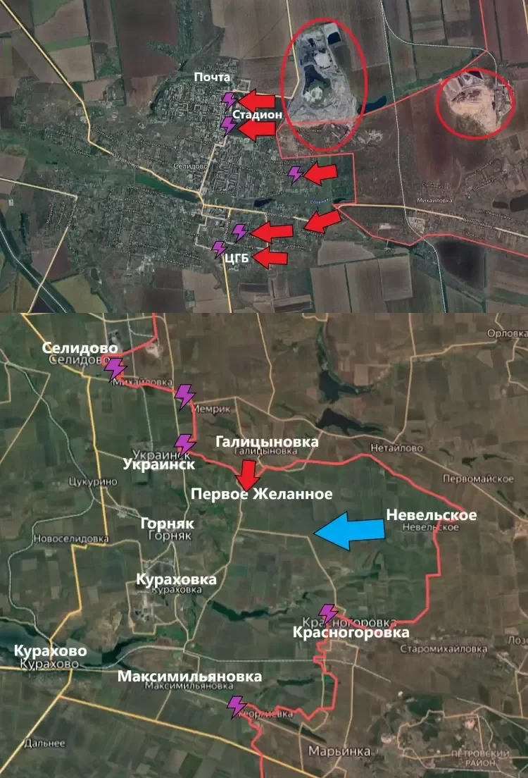 На Селидовском направлении по ситуации в самом Селидово информация очень сильно разнится. Известно, что в городе идут ожесточённые бои, но вот кто какие позиции занимает не ясно.