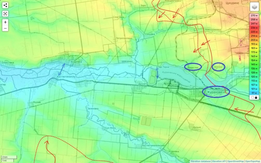 Эти данные находят подтверждение и в проукраинских источниках. Анализируя карты украинских аналитиков, работающих на ГУР и Deep State, можно заметить, что расстояние до Разлива от линии фронта в районе Ясной Поляны сократилось до шести километров - ещё вчера оно составляло более восьми километров.