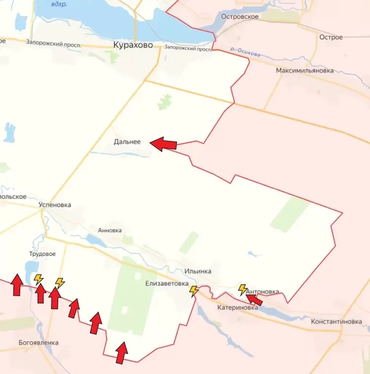 На южном участке Кураховского направления подразделения ВС РФ существенно продвинулись в направлении села Дальнее и подошли к его окраинам.