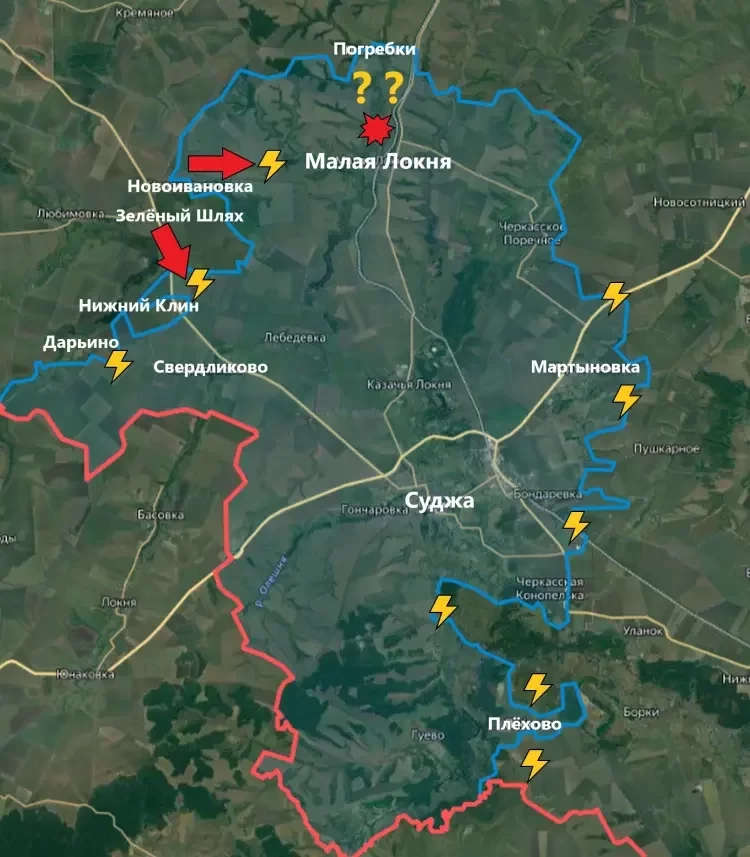 Российские силы продвинулись в районе населённого пункта Мартыновка, а также отмечаются успехи в населённых пунктах Новоивановка и в лесных массивах, расположенных недалеко от Малой Локни.