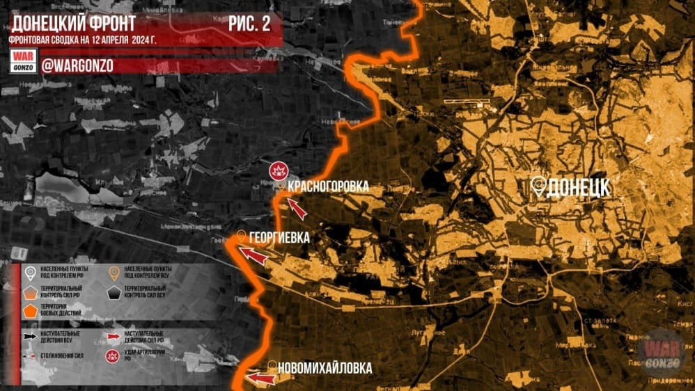 Обновленная карта боевых действий из зоны СВО на Украине от 12.04.2024