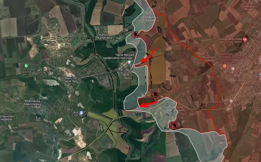 На Артемовском направлении российские войска наступают в микрорайоне Канал, активно используя авиацию и артиллерию для атак на скопления живой силы и техники в Часовом Яру и его окрестностях. Также отмечается минирование местности противником и использование гексакоптеров типа «Баба Яга» на рубеже Андреевка - Курдюмовка, сообщает военкор Евгений Лисицын в Telegram-канале.