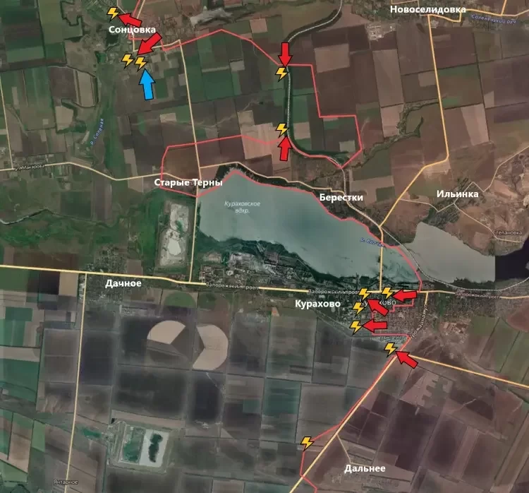 На Кураховском направлении в Сонцовке подразделения ВС РФ продвинулись к северо-западным окраинам села. Также сообщается, что наши бойцы взяли под контроль южную часть населённого пункта. Враг выложил видео с атакой на позиции ВС РФ в южной части Сонцовки. Результат этой атаки неизвестен, как и дата съёмки. Куда интересно то, как враг на бронетехнике прорвался к южным окраинам. Либо пробирался через дороги вдоль лесопосадок юго-западнее села, либо контроль над Старыми Тернами у нас не полный. Скорее всего, первый вариант. В Курахово происходит постепенно наши бойцы продвигаются в центре города. Продвижение в южной части идёт чуть бодрее, чем у береговой северной, сообщает PulsePen.