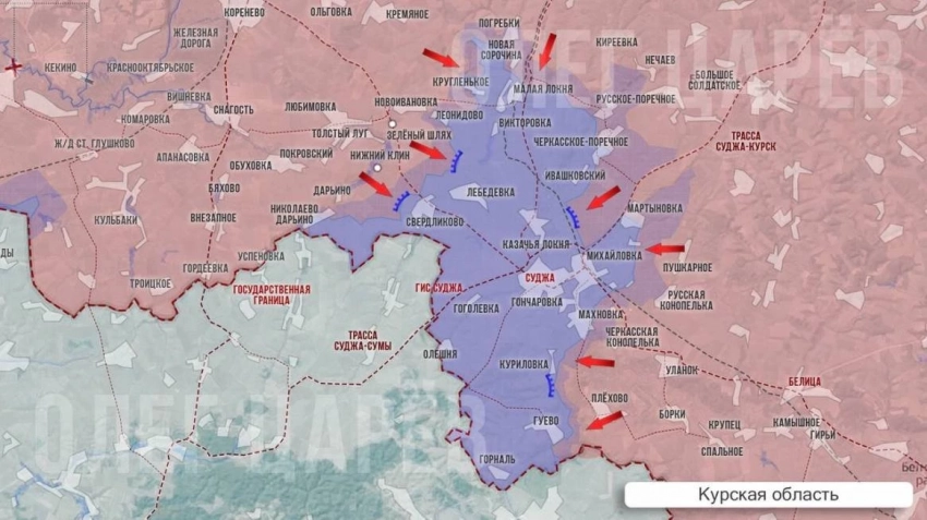 В свою очередь Telegram-канал "Два майора" информирует о том, что штурмовики группировки войск «Север» с тяжёлыми боями продвигаются в лесном массиве в направлении н.п. Викторовка и Новоивановка, деревни Леонидово. В Суджанском районе в направлении н.п. Погребки и восточнее села Дарьино противник предпринял две безуспешные попытки контратаковать. Удары нашей авиации по Сумской области не прекращаются.