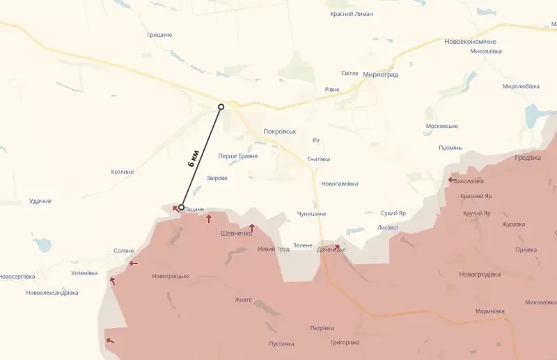 Также он подчеркнул, что перерезание этой транспортной артерии будет очень сильным ударом по украинской группировке в городе. Сейчас ВС РФ находятся в 6 километрах от трассы Т-0406 к юго-западу от Покровска.