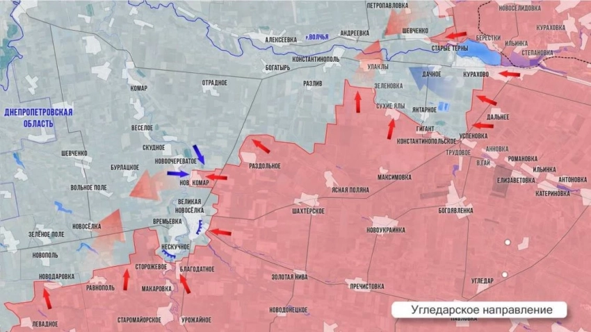 Угледарское направление. В августе и сентябре наши войска продвигались темпами, невиданными с 2022 года. И в итоге самым значимым событием на этом направлении стало освобождение Угледара 3 октября. ВСУ превратили этот город на возвышенности в крепость, а бои за него шли два года. Сражение за Угледар стало одним из самых тяжёлых в истории СВО, потребовало не только серьёзных ресурсов, но и переосмысления тактики боевых действий. Благодаря этой победе Южный фронт на Донбассе сдвинулся: был уничтожен Угледарский плацдарм ВСУ, а также отодвинут фронт от мирного Донецка. При этом армия России восстановила Времевский выступ (сейчас нашим осталось дожать Нескучное), осуществила охват Большой Новосёлки, сформировала «большой кураховский карман» и давит на оставшиеся рубежи в Курахово с юга - освобождено около 90% территории, враг выбит из восточной, южной и центральной частей, бои идут на территории ТЭС.