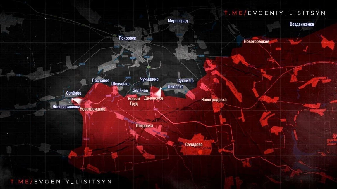 На Красноармейском направлении на восточном фланге наши бойцы приблизились уже практически к трассе Красноармейск-Константиновка. Также начались бои на южных подступах к поселку Зверево и за опорники ВСУ вдоль трассы северо-восточнее Котлино.