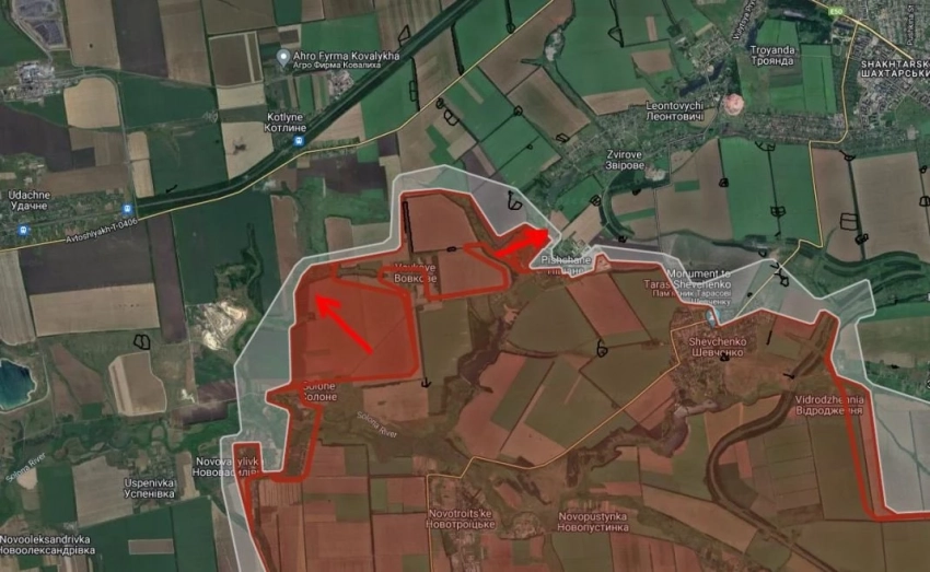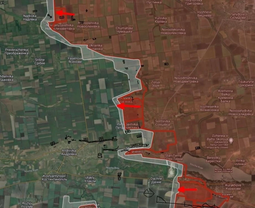 ВС РФ имеют тактические успехи севернее Новоелизаветовки, взяли под контроль Славянку и участок местности южнее на глубину до 1.35 км.