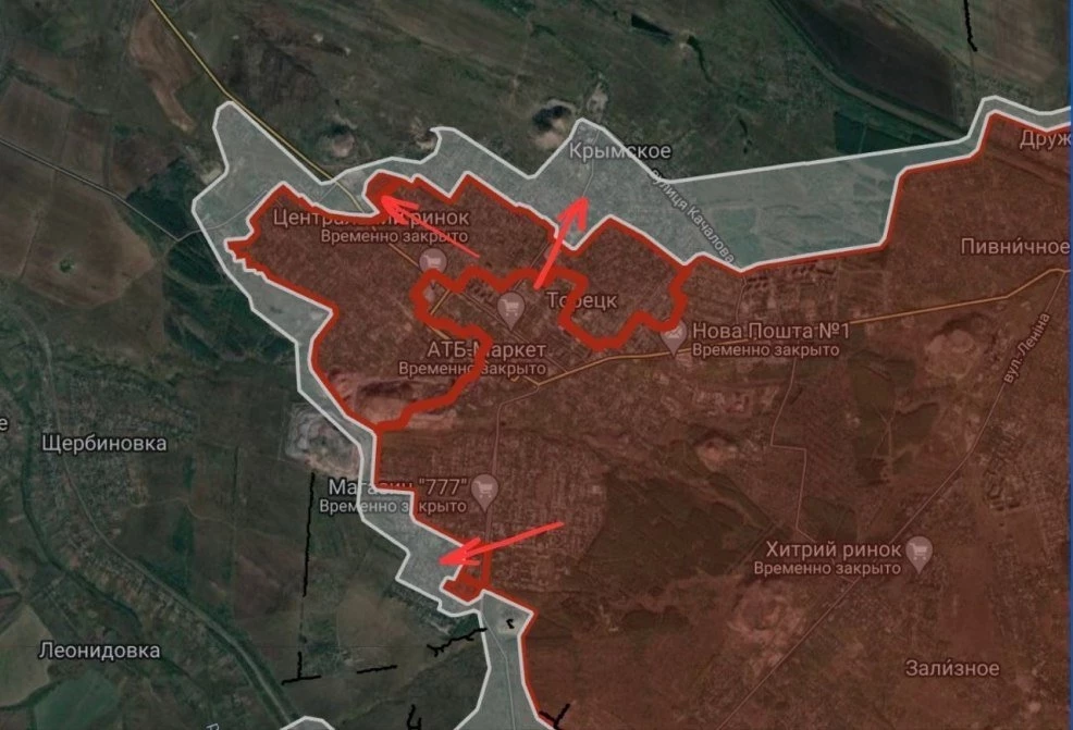 На Торецком направлении продолжаются штурмовые действия в районе шахты «Торецкая». ВС РФ давят с востока, под контроль перешла большая часть Крымское, имеются тактические успехи в западной части Торецка.
