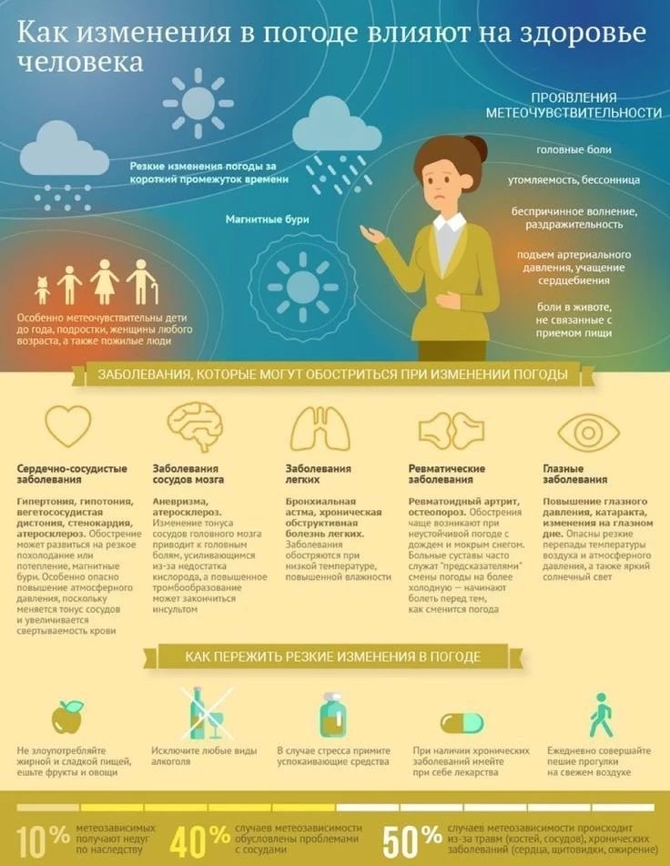 Как погодные изменения влияют на самочувствие: инфографика