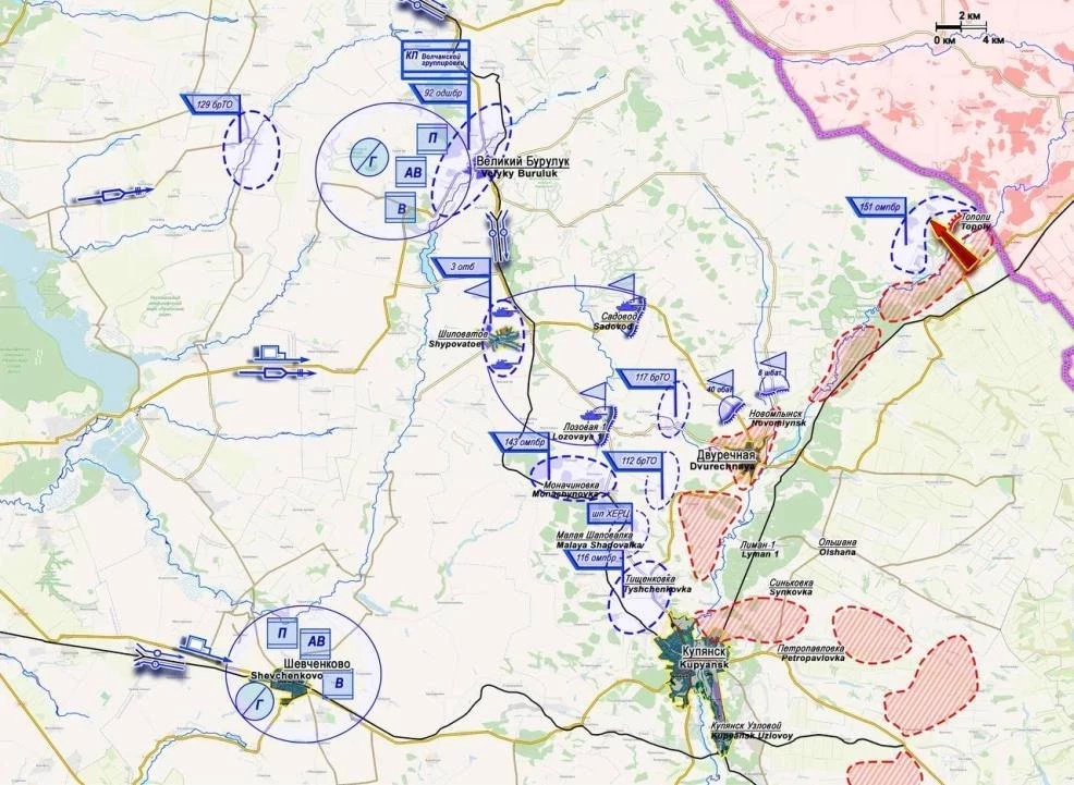Вероятный замысел врага предусматривает последовательное наступление по сходящимся направлениям с последующей встречей подразделений ВСУ в треугольнике Плехово - Борки - Уланок.