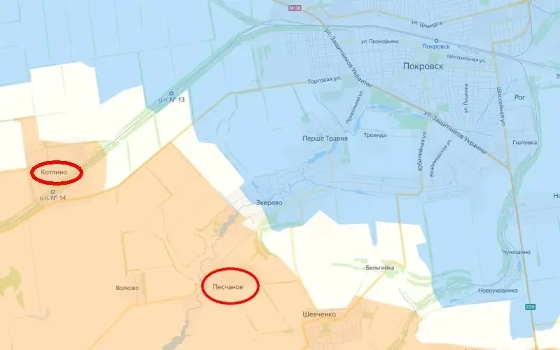 Село Песчаное было полностью освобождено бойцами группировки войск «Центр» ВС РФ в середине января этого года, о чем официально сообщило Минобороны России. Через несколько дней было взято и Котлино. Северо-западнее этого села наши подразделения пытаются закрепиться на железнодорожных путях. В районе Зверево и северо-восточнее Песчаного идут попытки прорыва российских штурмовых групп к террикону.
