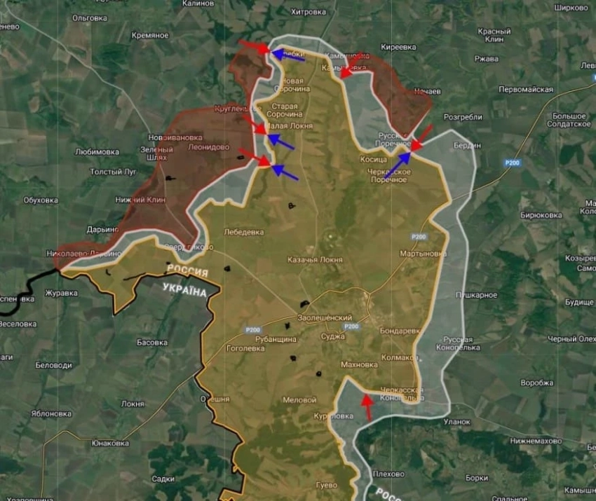 Telegram-канал "Дневник десантника" пишет, что в курском приграничье российская армия продолжает наступать в районе Свердликово, а также зачищает район южнее Махновки. Кроме того, по информации авторов канала, ожесточенные бои идут у Никольского.