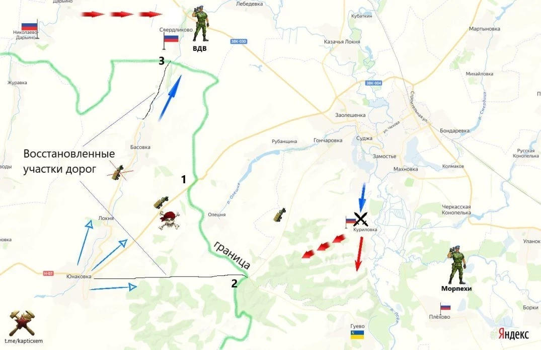 Карта боевых действий в Курской области. Данные на 25 февраля