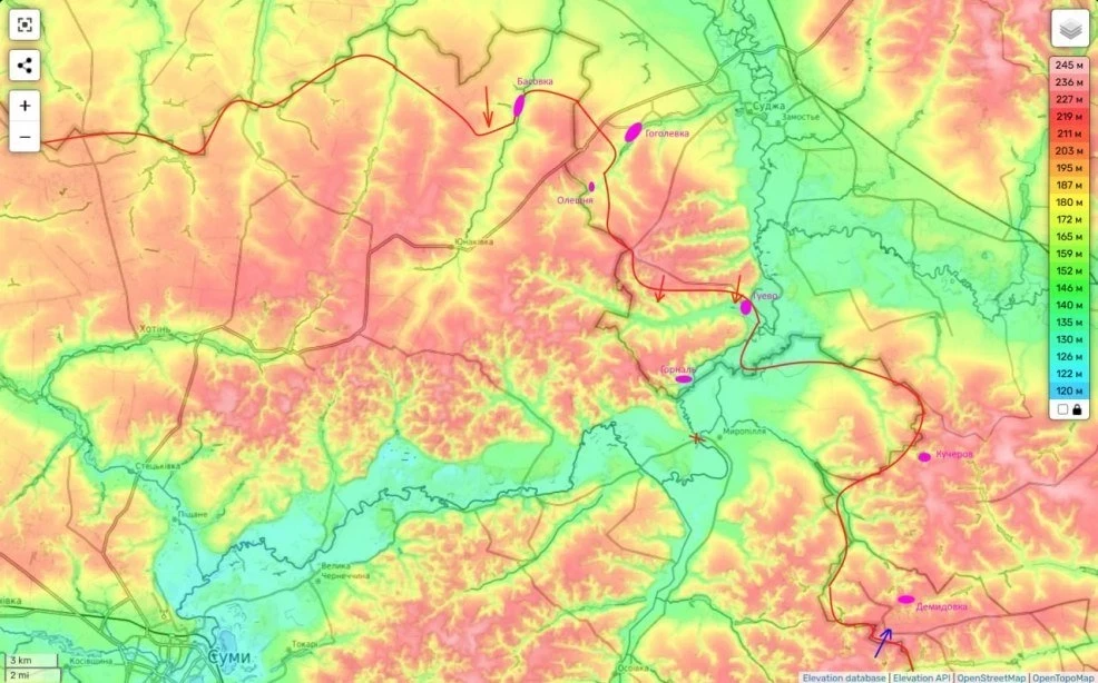 Он уточнил, что противник пытается подвозить свои силы через лесистые участки близ Суджи, но удается доставить лишь небольшую их часть. Это связано с тем, что Вооруженные силы России осуществляют огневой контроль над маршрутами, по которым движутся украинские подразделения.