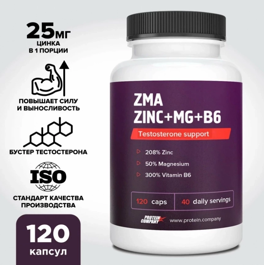 Комплекс ZMA от PROTEIN.COMPANY — это уверенный претендент на попадание в топ бадов для повышения тестостерона, особенно для тех, кто регулярно тренируется и хочет максимум от своего тела. В составе — проверенная тройка: цинк, магний и витамин B6, которая работает без лишнего шума, но с предельной отдачей. Она помогает восстановлению после тренировок, нормализует гормональный фон и даёт устойчивый прирост силовых показателей. При этом ZMA безопасен, подходит для длительного приёма и отлично сочетается с другими добавками.