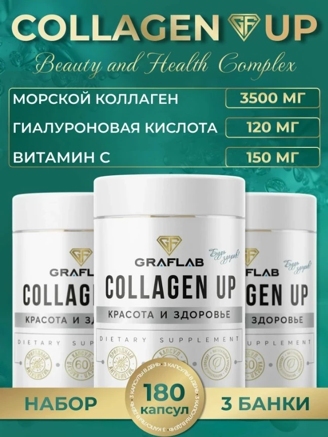 Collagen UP от GRAFLAB — это топ бад коллаген, созданный для тех, кто не готов мириться с усталой кожей и слабыми суставами. Морские пептиды в связке с гиалуронкой и витамином С не просто «для галочки»: они встраиваются в обмен веществ, усиливая природную выработку коллагена. Кожа — плотнее, волосы — крепче, ногти — как титан. А суставы? С ними снова можно прыгать через ступеньки. Формула — мощная, дозировка — разумная, усвояемость — топ. Если искать результат, а не обещания — это оно.