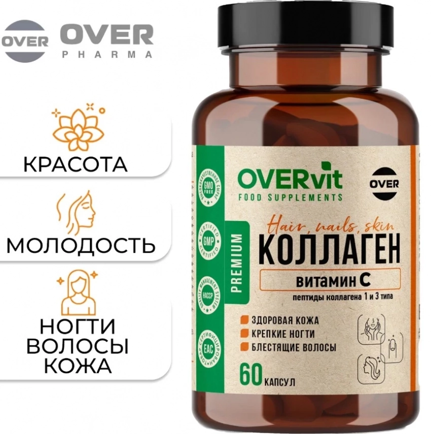 Коллаген говяжий с витамином C от OVER — это крепкая связка, где каждый компонент работает в унисон. Гидролизованный коллаген служит строительным материалом для кожи, суставов, сосудов, а добавление витамина C усиливает его эффективность и помогает синтезировать собственный коллаген. Этот топ бад коллаген не только подтягивает кожу, но и укрепляет суставы, волосы, ногти и сосуды. Подходит для ежедневного применения, особенно в период активных нагрузок или возрастных изменений.