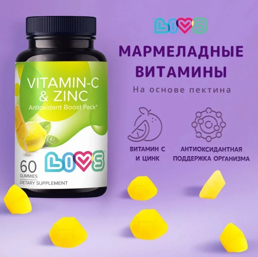 LIVS Витамин С + Цинк мармеладные жевательные пастилки, 60 шт.