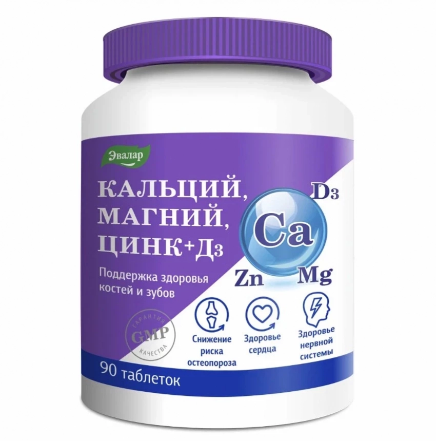 Кальций Магний Цинк+Д3, 90 таблеток, Эвалар