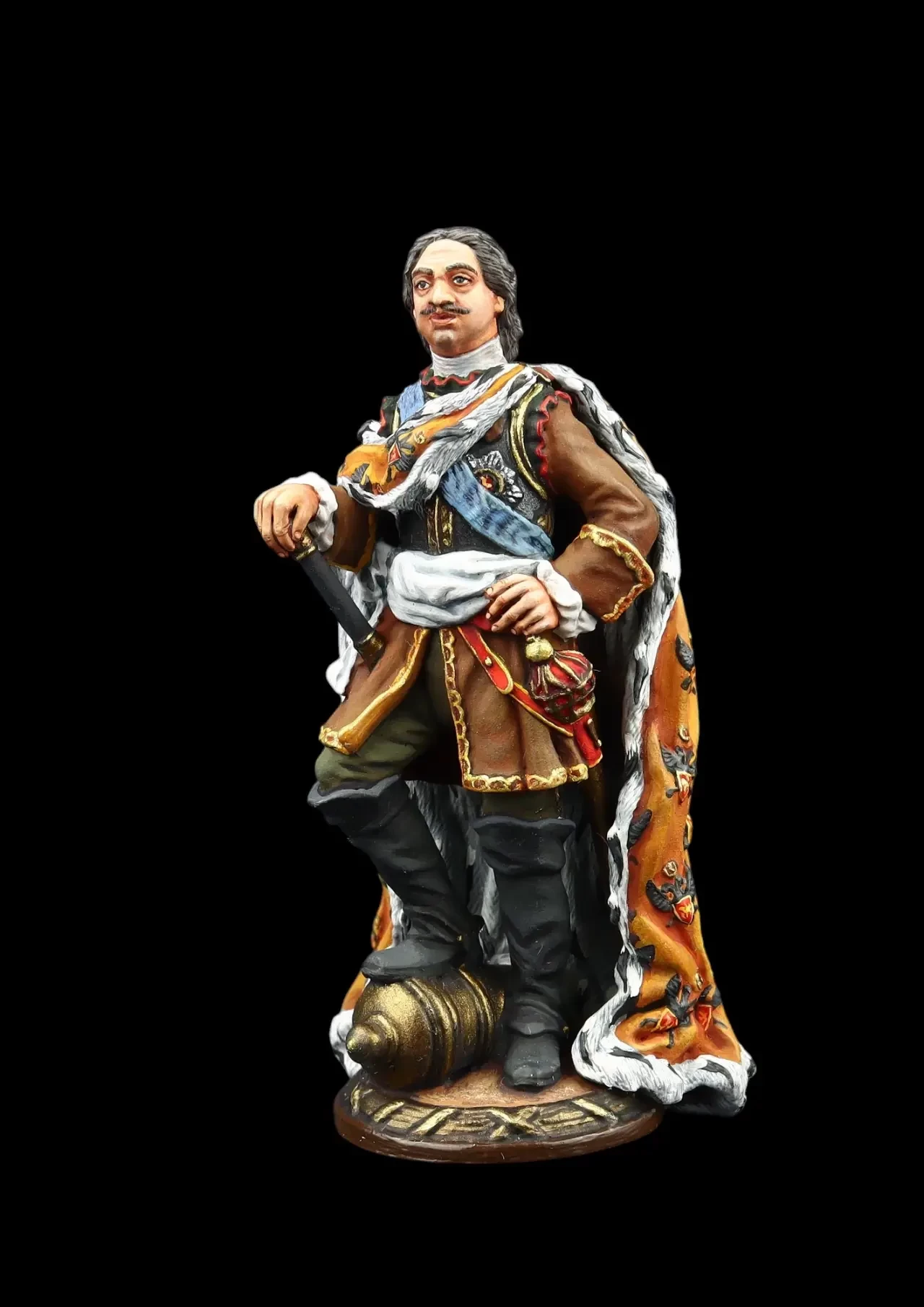 Петр I. Трудно сказать, где и когда он появлялся в подобной мантии, и носил ли он ее вообще, но смотрится красиво! Производители: «Silver Dream Studio» и «EK Castings»