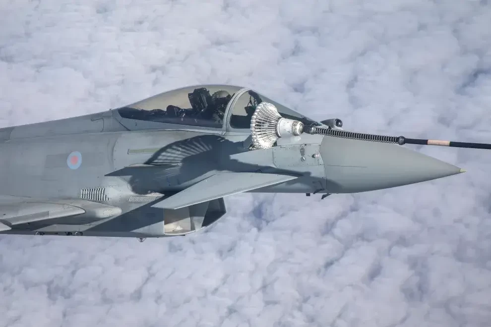 «Тайфун» Королевских ВВС заправляется от танкера «Вояджер» во время полёта над Европой