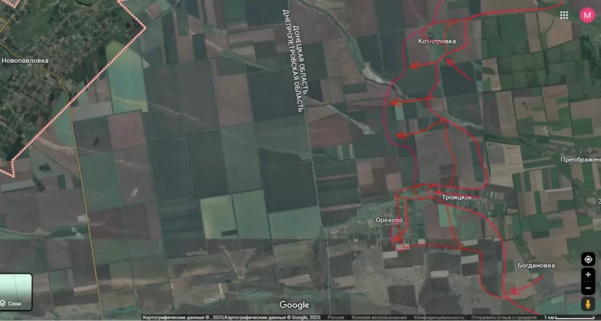 «В Ореховом осталось менее 2 км до границы. Наши части уже ведут бои за центральную улицу, одновременно продавливая оборону в Новосергеевке и западнее Котляровки», - сообщил Подоляка в своём Telegram-канале накануне.