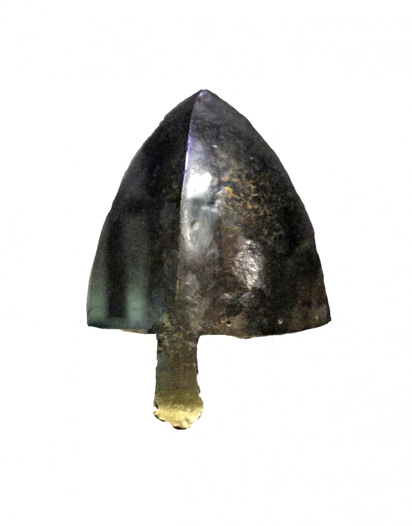 Понятно, что снаряжение и пешего профессионального воина было дорогим. Если мы обратимся к законам Кнута, то обнаружим, что хериот (одаривание господином «служилых» на период службы) составлял: для эрла – четыре оседланных и четыре неоседланных лошади, четыре меча, кольчуги и шлема, восемь щитов и копий, и денег, для тэнов – в два раза меньше. В 1008 г. для отражения датской агрессии было определено с 8 гайдов земли (гайд – единица обложения) выдавать кольчугу и шлем. Мода на «французские» шлемы, огромное количество изображений которых мы знаем на ковре из Байё, и дошедших до нас шлемов Св. Вацлава, шлема из озера Орхово, Могильненского повята, Быдгощского воеводство и шлема, хранящегося в Венской национальной библиотеке, господствовала в Англии и Скандинавии, надо думать, с начала XI в., если не с конца XI в. Такой шлем (nasalhelm) вытеснил шлемы предыдущих периодов. У Олафа Святого, старшего брата Харальда, все сто дружинников были одеты в кольчуги и такие вальские шлемы, согласно королевской саге об Олафе Святом.