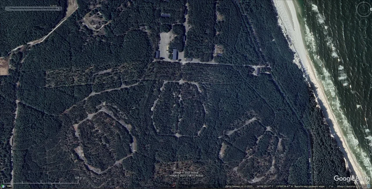 Стартовые позиции польских ЗРК С-200ВЭ развернули на побережье Балтийского моря в 8 км от городка Мжежино, в непосредственной близости от береговой черты.