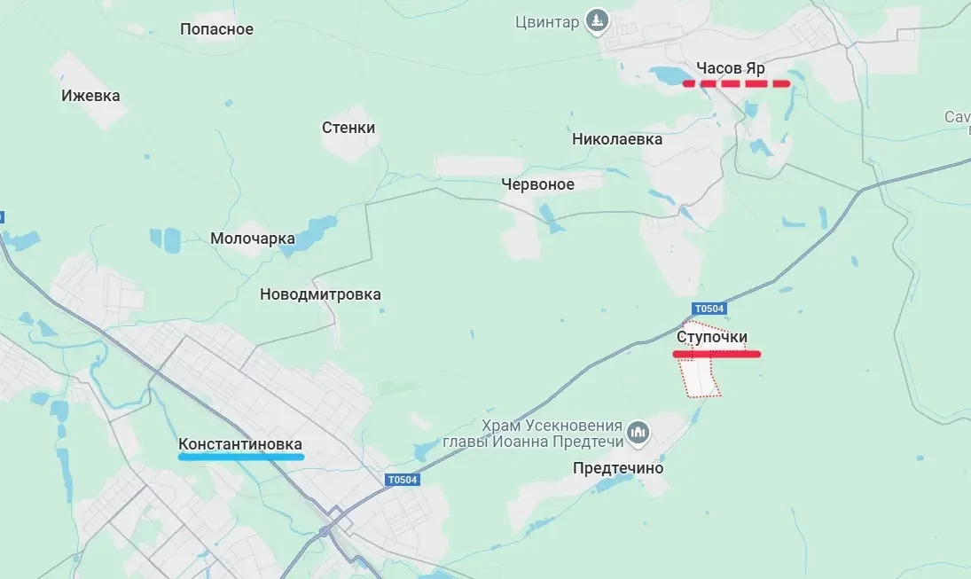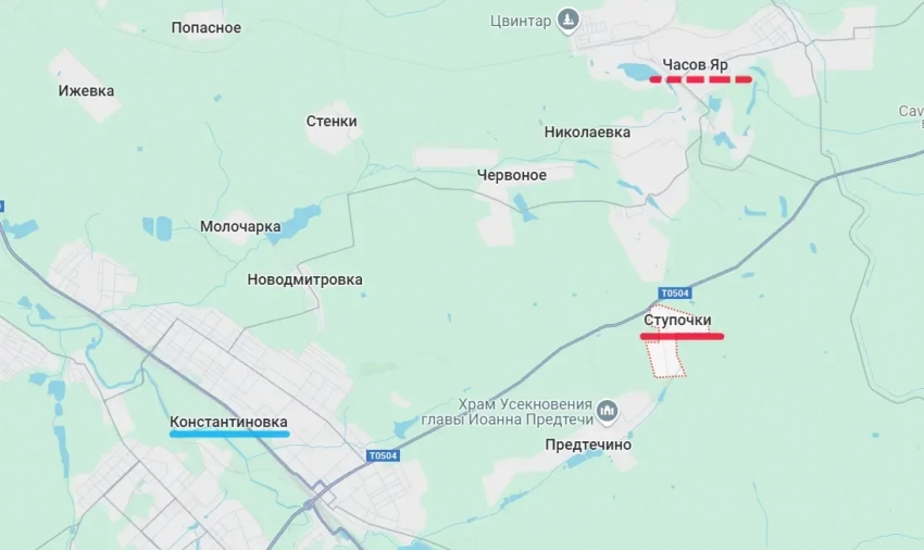 Из района Часова Яра поступает информация о продвижении наших войск на этом направлении. По последним сведениям, Вооружённые силы России освободили населённый пункт Ступочки, что к югу от Часова Яра.