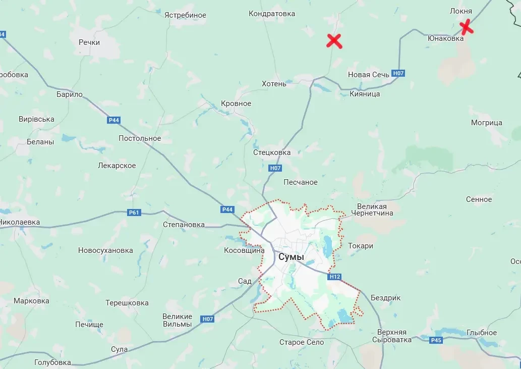 Южнее дороги Р44 - дороги на Конотоп (Р61) и на Киев (продолжение Н07). И если противник утратит контроль над участками этих автодорог, то ВСУ вместе с резервами из ТрО в Сумах будут отрезаны с севера, востока и запада. Останется только «зелёный коридор» через Тростянец в сторону Полтавы.