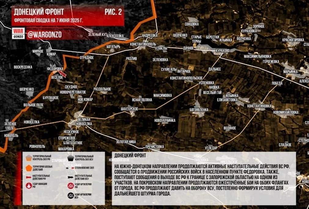 ВС России ведут ожесточённые бои в Малиновке на Покровско-Новопавловском направлении: свежие данные на 07.06.2025