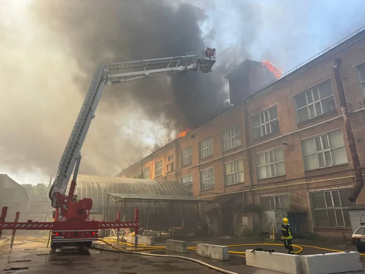В городе Ровно на Западной Украине произошло масштабное возгорание кровли трехэтажного здания бывшего газоразрядного завода. Как сообщают местные СМИ, сигнал о пожаре поступил в службу спасения сегодня в 12:03, после чего на вызов незамедлительно выдвинулись пожарные расчеты.