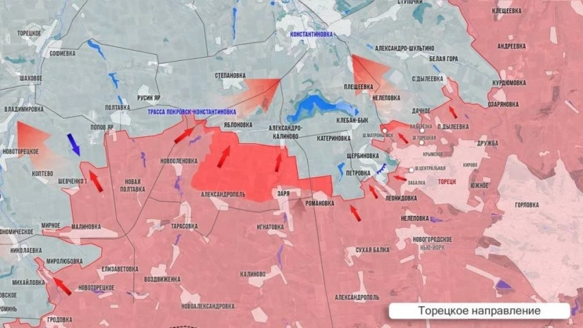 К западу от Торецка упорные бои в Яблоновке, Александро-Калиново и Нелеповке. Бои у восточного берега Клебан-Быкского водохранилища - важный узел, успех там отрежет противнику дороги на Константиновку.