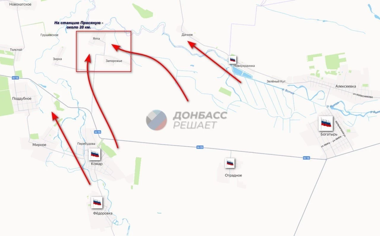 Теперь наступающие части готовятся к продвижению на Ялту (небольшое село, но с символичным названием), Запорожье (ещё одно громкое имя на карте).
