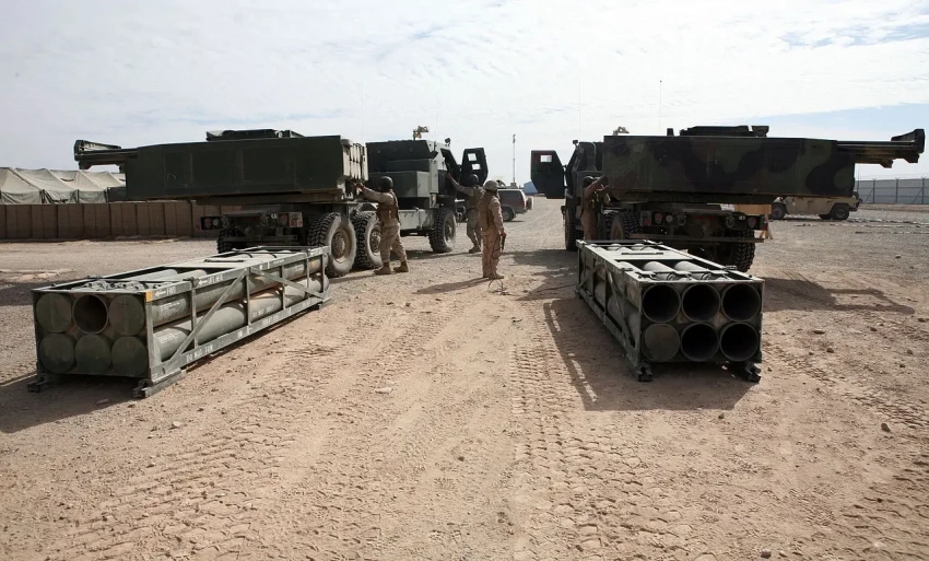 РСЗО M142 и транспортно-пусковые контейнеры с ракетами