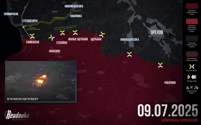 На Запорожском фронте ВС РФ зачищают очаги сопротивления ВСУ в Каменском. Артиллерия и дроны «утюжат» позиции противника в Плавнях, штурмовики продвигаются к этому селу вдоль берега Каховского водохранилища. Упорные бои идут в Малой Токмачке.