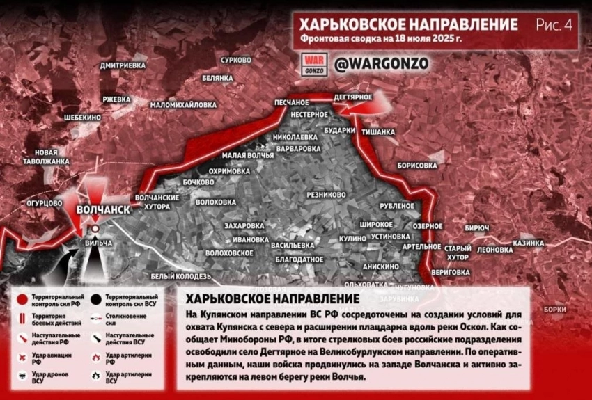 Карта боевых действий на Украине. Ситуация в зоне СВО на 18.07.2025