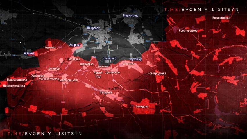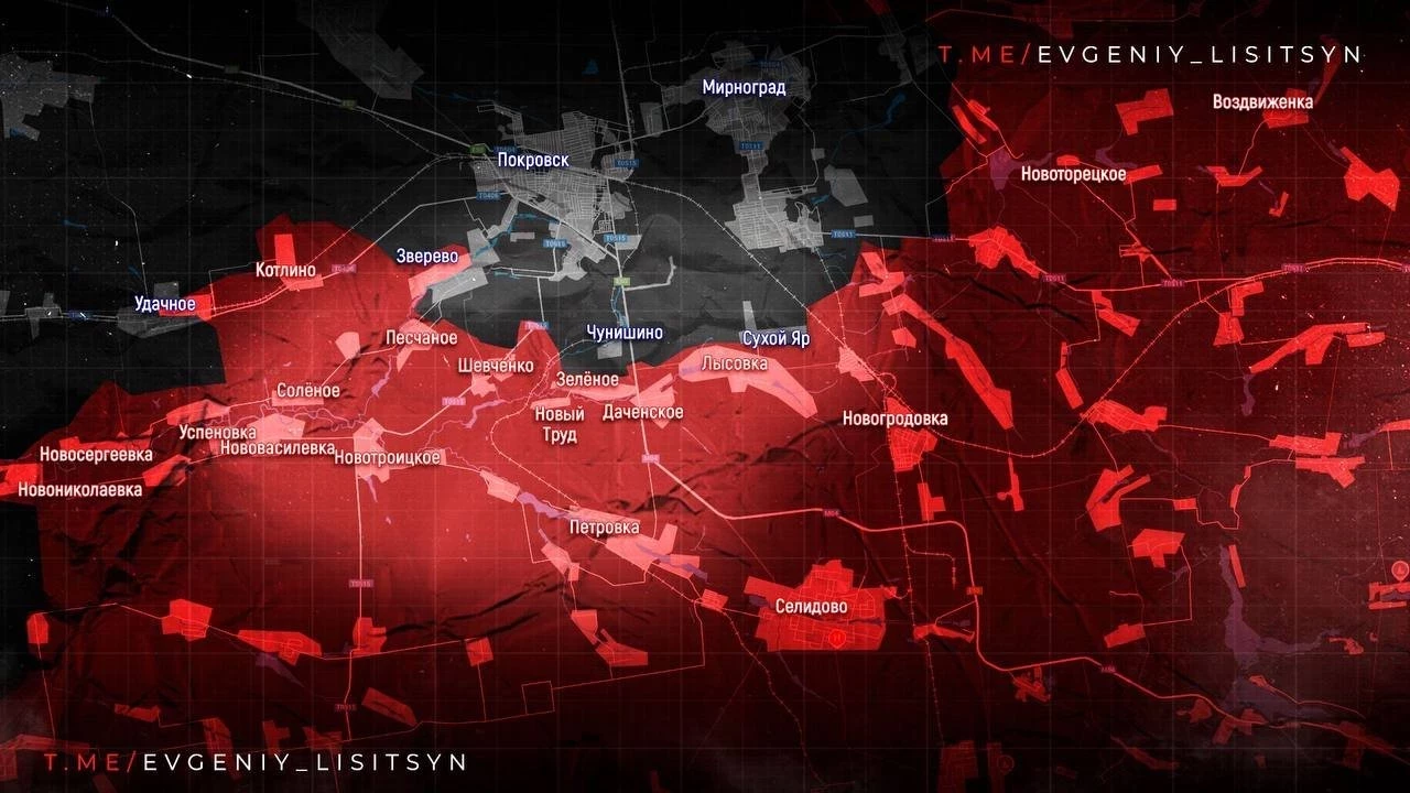 На Покровском направлении основной удар ВС РФ идёт севернее Мирнограда. Наши штурмуют Новоэкономическое, атакуют Красный Лиман и район шахты «Краснолиманская». Ведётся бой за линию Новоторецкое-Фёдоровка. Ночью мощно ударили по Павлограду - важному тыловому узлу ВСУ, сообщает военкор Евгений Лисицын.