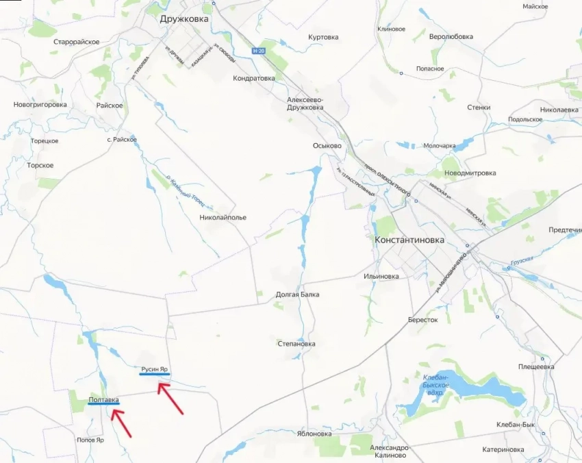 Позже стало известно о продвижении российских войск в районе сел Полтавка и Русин Яр, что в 11 километрах к юго-западу от Константиновки и в 15 км к югу от другого донецкого города Дружковка. Это минимальное расстояние до Дружковки с юга с начала СВО.