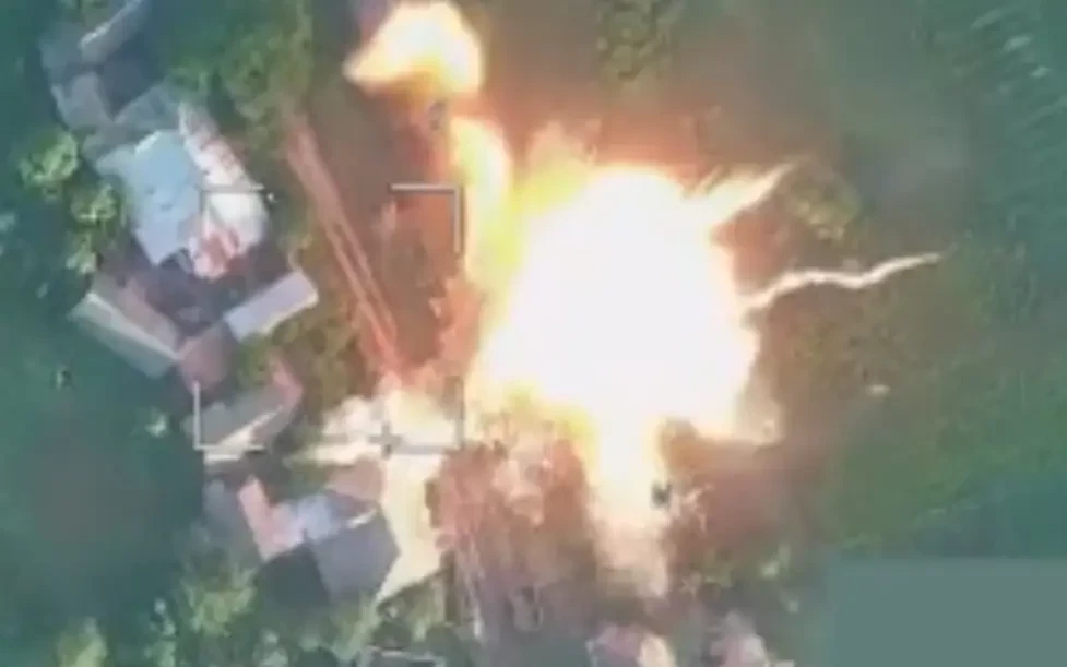В сети опубликовано видео, на котором запечатлен момент поражения ПВД и скопления автомобильной техники подразделения мобильной огневой группы 104 обр. ТерO ВСУ ударами беспилотников-камикадзе «Гарпия».