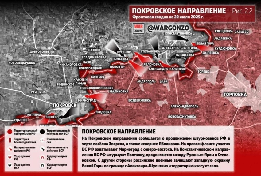 Главные новости » Эксклюзив » ВС РФ ведут ожесточённые бои в Новоукраинке, Чунишино и Сухом Яре на Покровском направлении: свежие данные от 25.07.2025