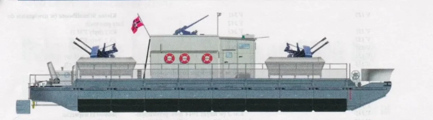 Модульная конструкция позволяла перевозить баржи железнодорожным и автомобильным транспортом в разобранном виде, а повторная сборка занимала всего лишь 6-8 часов. Уже через 24-30 часов после прибытия корабль был готов к боевому применению.