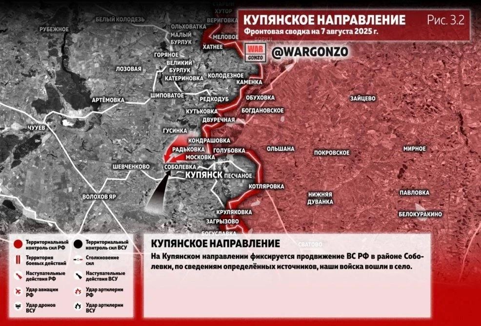 Карта боевых действий на Украине. Обстановка в зоне СВО на 07.08.2025