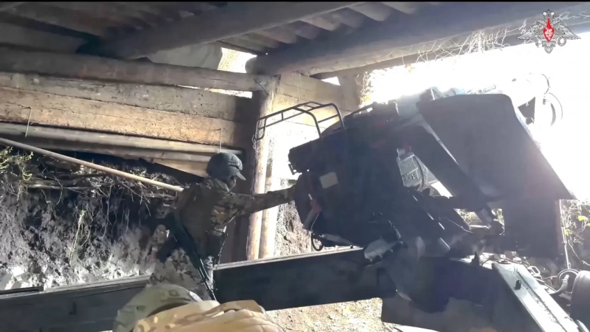 Расчёт гаубицы «Мста-Б» на огневой позиции. Такие системы могут вести огонь по данным комплекса «Глаз/Гроза»
