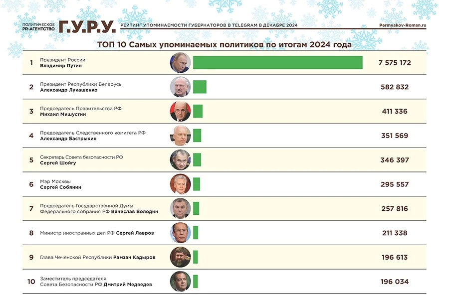 Самые популярные в Telegram политики по итогам 2024 года (топ 10 самых упоминаемых политиков года в русскоязычных телеграм-каналах)