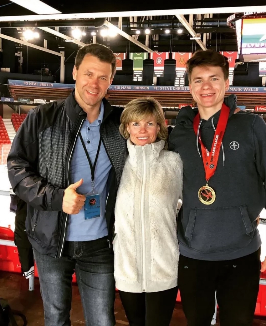 Максим Наумов с родителями Евгенией Шишковой и Вадимом Наумовым/Фото: maksim.naumov_/Instagram*По данным СМИ, часть из семей спортсменов были российскими эмигрантами. Предварительно, этим рейсом также летела советская фигуристка Инна Волянская. Как и Шишкова с Наумовым, она работала тренером в США.